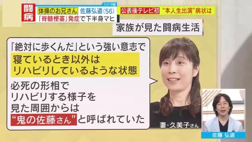 【特集】「『完治という言葉がない』と言われ絶望」“体操のひろみちお兄さん”こと佐藤弘道さんを突如襲った『脊髄梗塞』 下半身麻痺による過酷な闘病と死すら考えた“どん底”の日々…支えとなった家族との絆と、妻・久美子さんが初めて伝える想い
