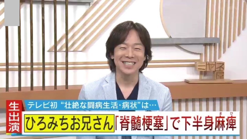 『脊髄梗塞(せきずいこうそく)』により下半身麻痺(まひ)となったことを公表した、“ひろみちお兄さん”こと佐藤弘道さん。突然の病魔に絶望を感じた日々・壮絶なリハビリ生活・支えとなった家族とのエピソードなどを語っていただきました。発症から3か月間、最も近くにいた妻・久美子さんが抱えていた後悔と葛藤、そして心に秘めていた願いとは―。