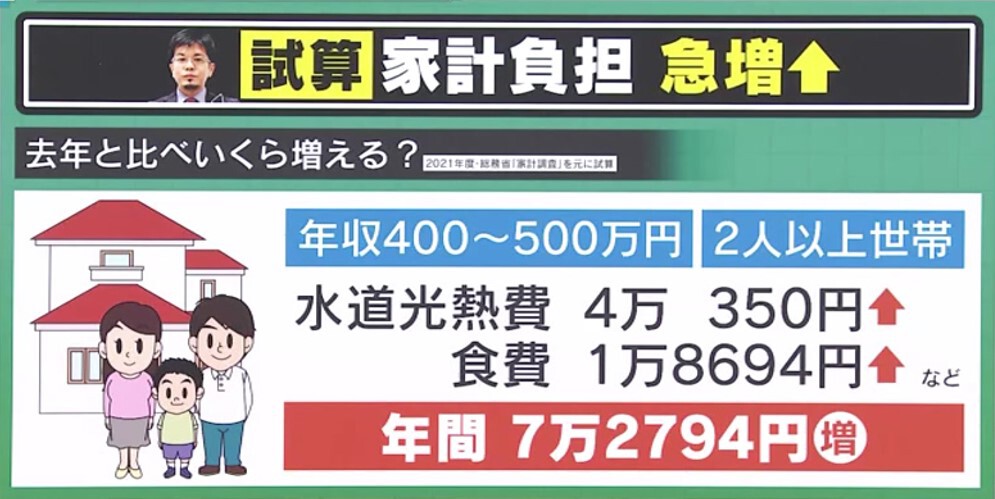 Q.森永さんの試算では、年収400~500万円の2人以上の世帯で、去年より年間7万2千円以上家計負担が増えるということですが、これはかなり大きいですね?