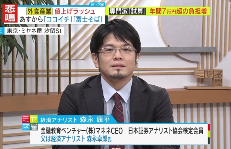 6月1日から「ココイチ」や「富士そば」が値上げすることを発表。他にも「ケンタッキー」、「餃子の王将」、「スシロー」など、有名外食店が相次いで値上げを発表しています。また外食店だけでなく、インスタントラーメンやお菓子、お酒、油などの食料品も軒並み値上げする“物価高”に、さらに追い打ちをかけているのが、20年ぶりの水準となっている“円安”。そんな中、「ダイエットをしたら財布がふくよかになった」という、経済アナリストの森永康平(もりなが・こうへい)さんが、私たちの生活を守る“家計防衛策”を解説します。