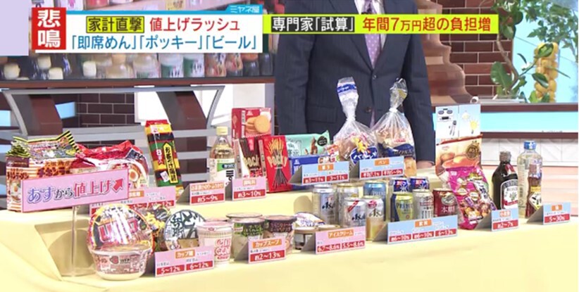 帝国データバンクの統計によると、加工食品や調味料などは、すでに4770品目が9%~15%値上がりしています。今わかっているだけでも、今年一年で値上げする品目は8385品目に上るということです。