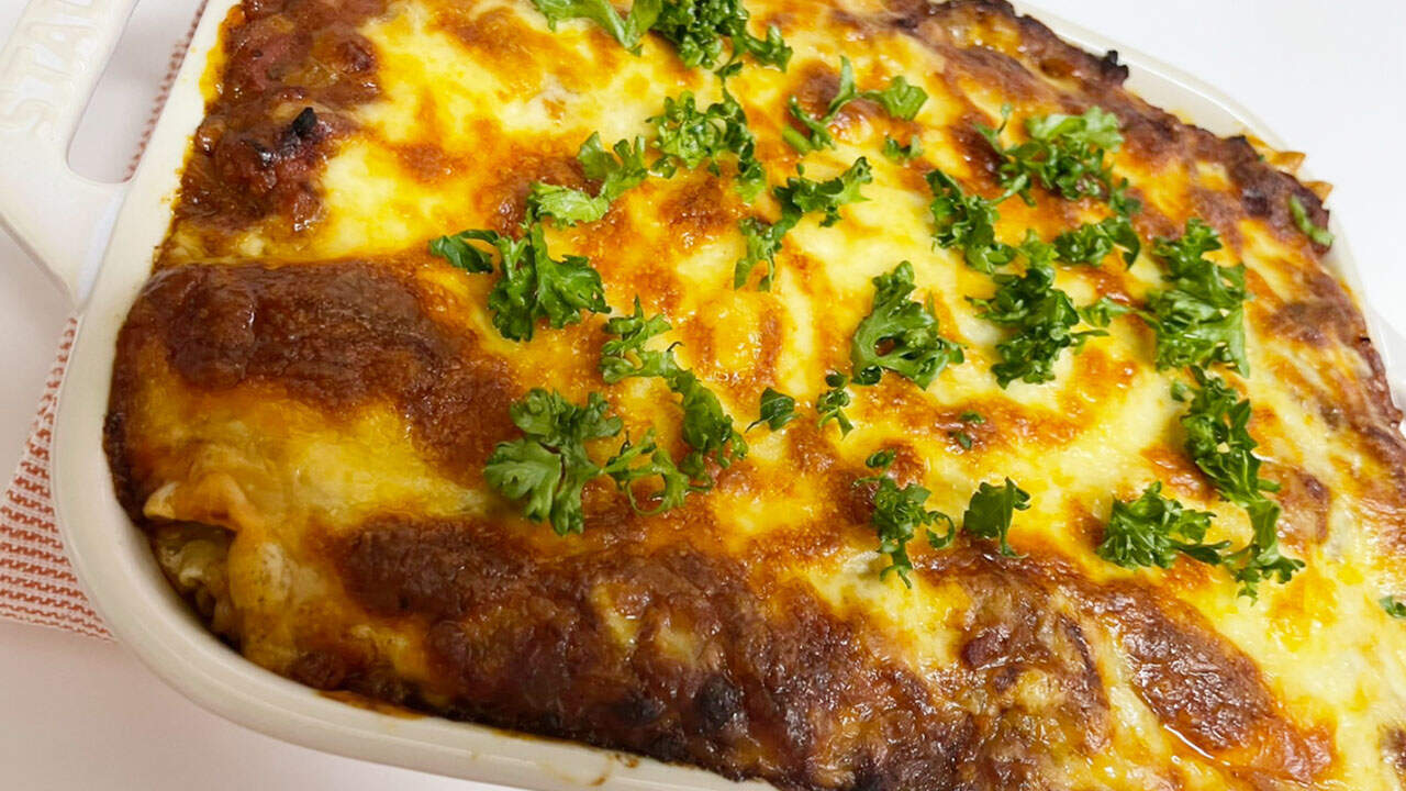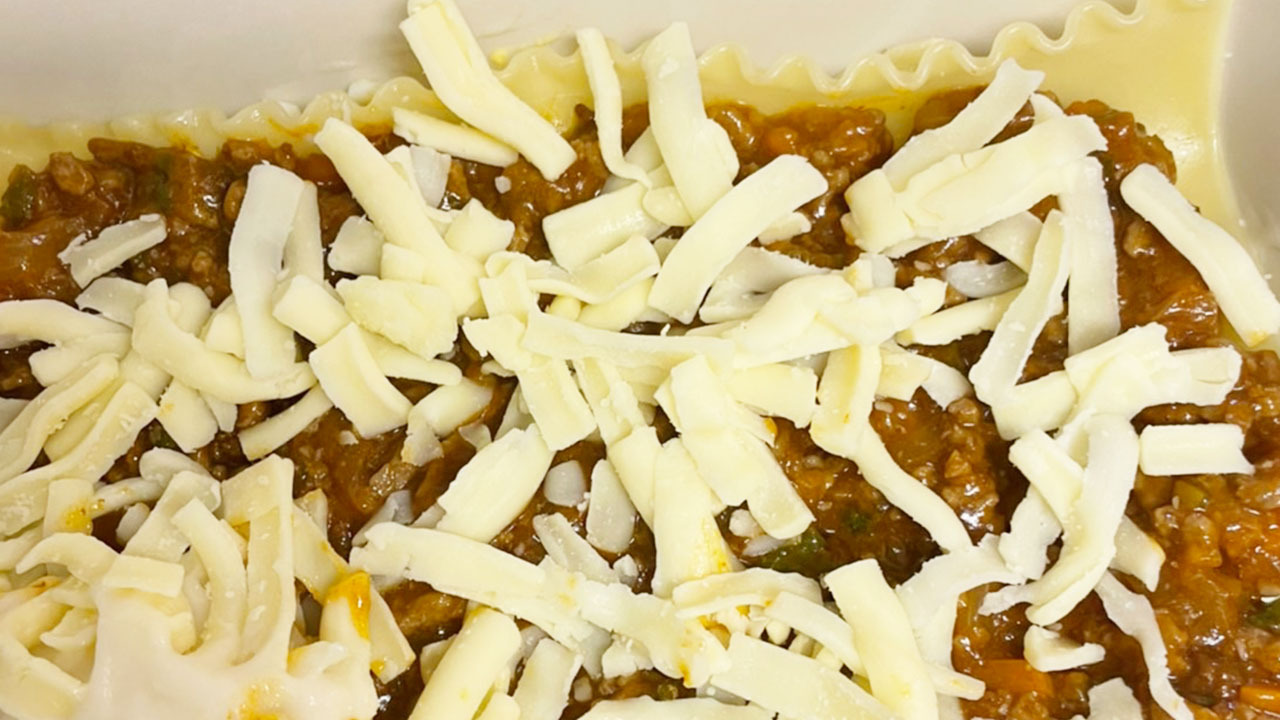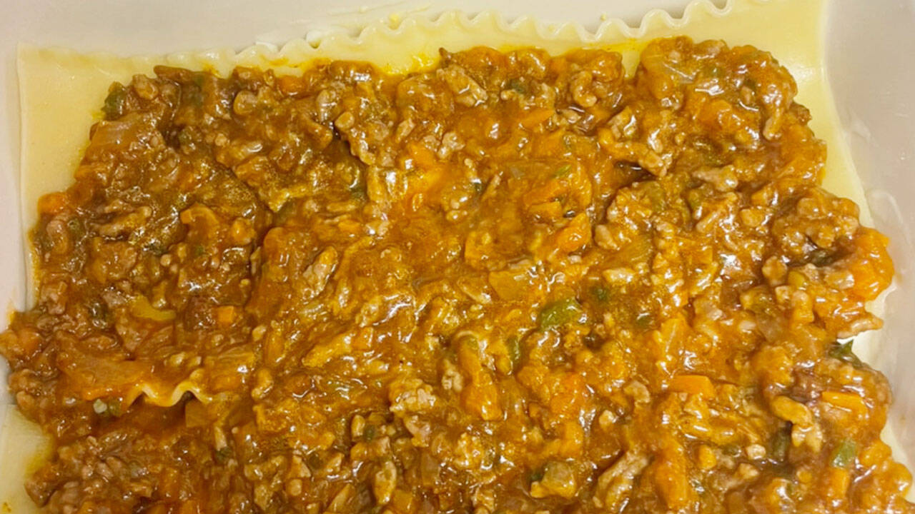 市販のミートソース缶やホワイトソース缶を使って時間短縮!今回は挽肉や苦手な野菜を加えることでボリュームアップ。