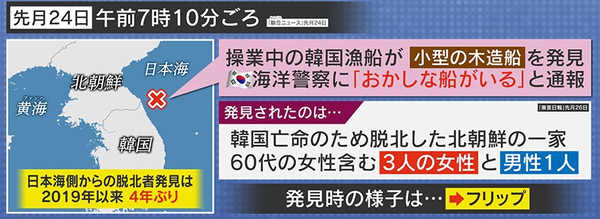 2019年以来4年ぶりに日本海側で脱北者を発見