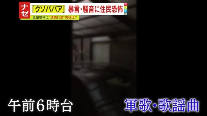 ある日の午前6時台、住宅街に鳴り響く軍歌や歌謡曲。そして再び大声で喚く声が…