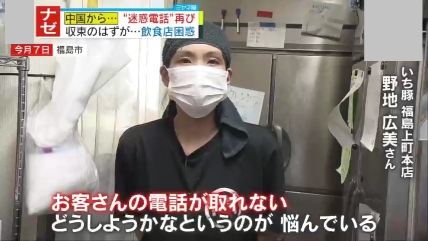 その後、一旦は落ち着きましたが、2024年7月に入って再び福島市内のラーメン店にかかってくるようになったという、中国からの迷惑電話。このラーメン店では営業に支障が出たため、電話線を抜いたということです。
