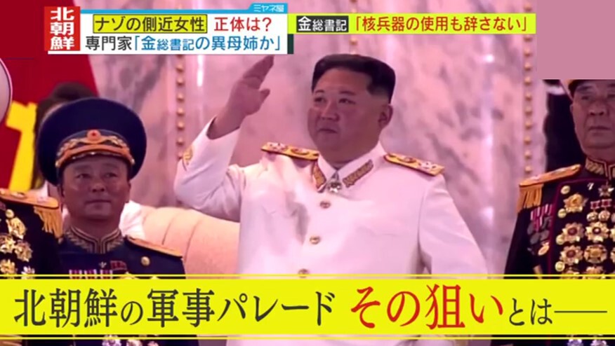 「映像に写っていなかったので、もしかしたらパレードに出席しなかったのではないかということなのですが、北朝鮮で再放送された映像を見ると、子どもたちからの花束贈呈のときの後ろの方に、チラッと写っていたことが確認されたんです。それから、この軍事パレードが終わった後、金正恩夫妻が宴会の会場に入るときに後ろに立っていたということも、映像の中に含まれておりました」