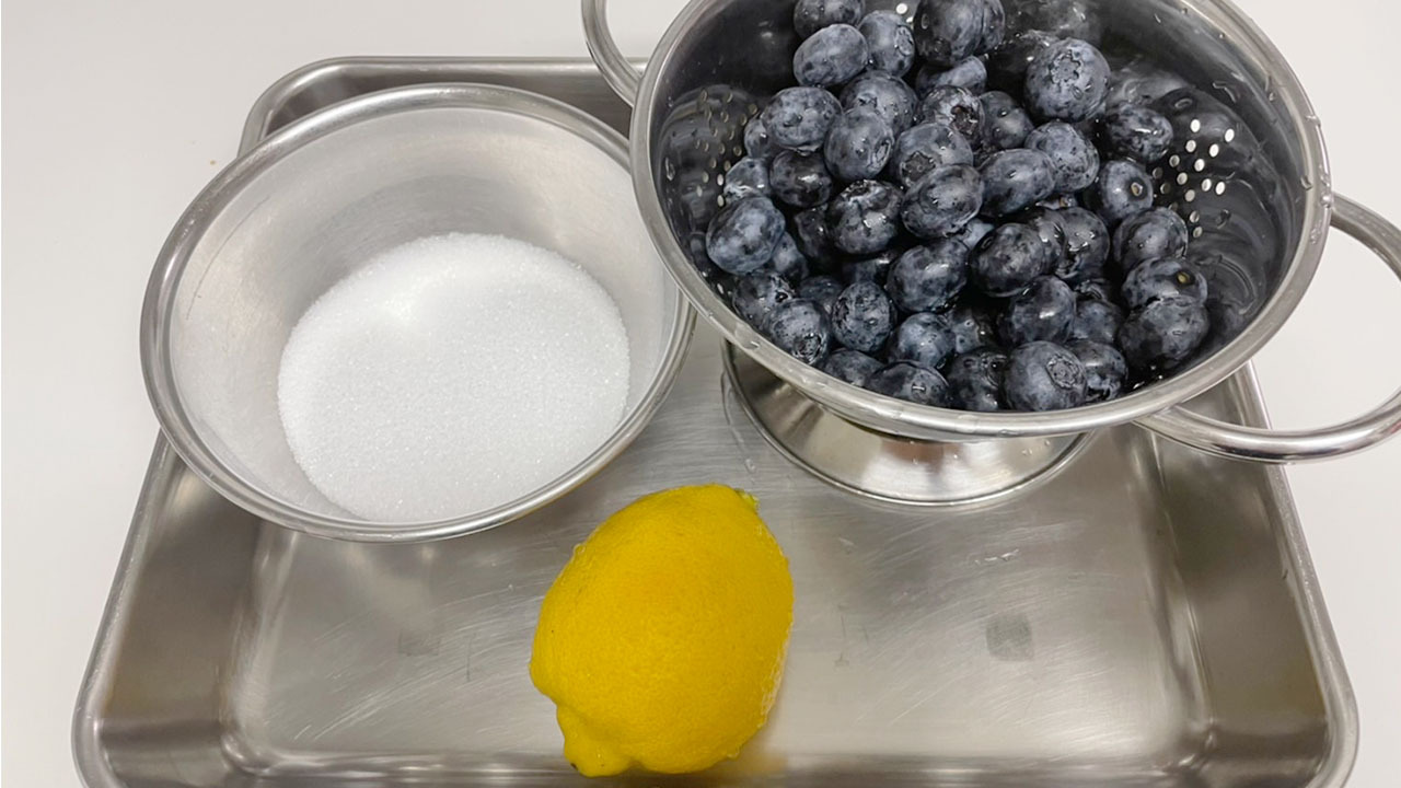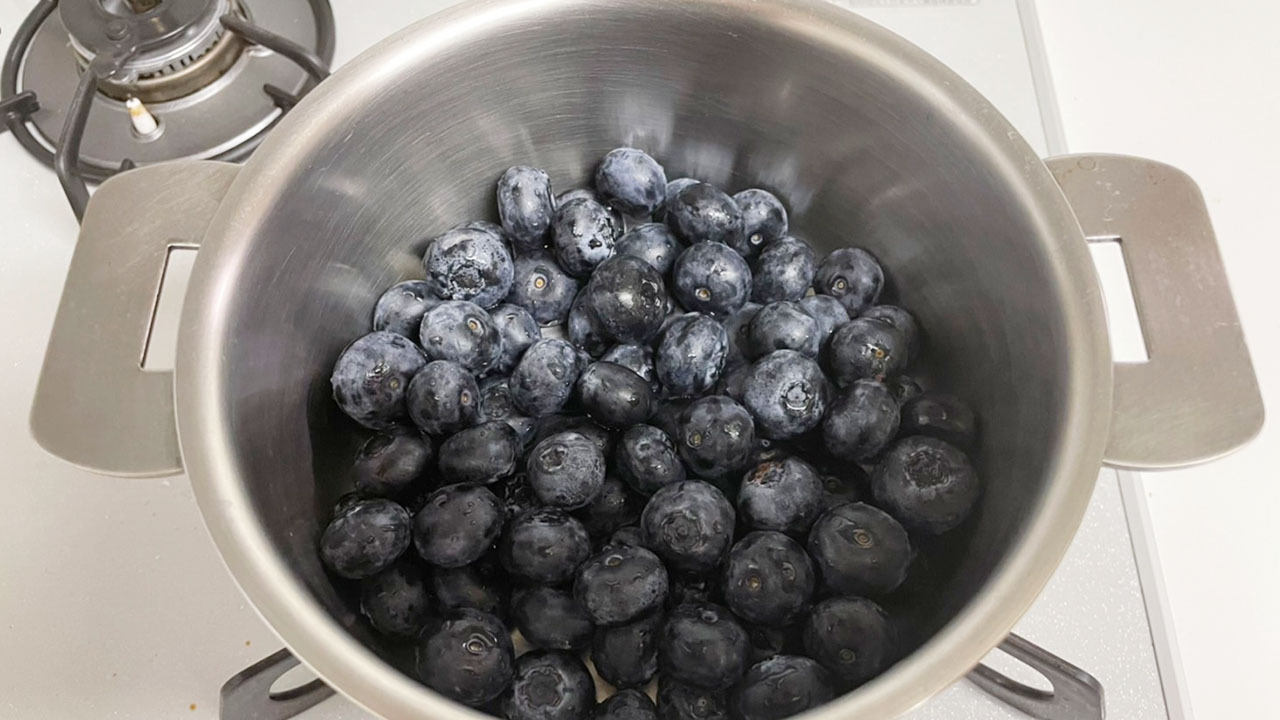 ① 洗ったブルベリーを鍋に入れ弱火で煮る。