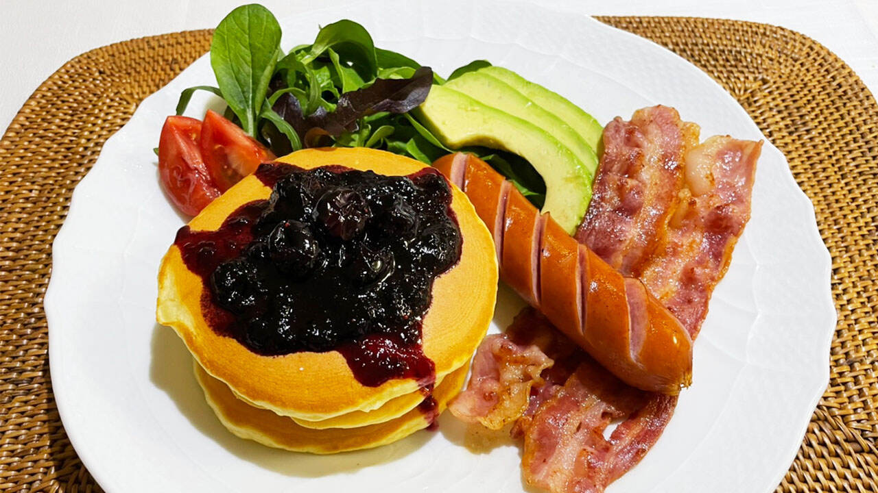 郡司パパレシピ★ 「モーニングプレートパンケーキ ~ブルーベリーソースを添えて~」
