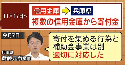すると翌日17日以降には、複数の信用金庫などから兵庫県に寄付金が集まったということです。斎藤知事は「寄付を集める行為と補助金事業は別。適切に対応した」とコメントしています。