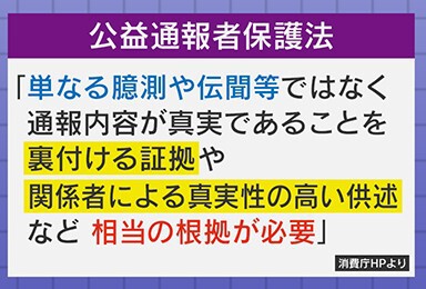 「公益通報者保護法」は「単なる憶測や伝聞等ではなく、通報内容が真実であることを裏付ける証拠や、関係者による真実性の高い供述など、相当の根拠が必要」だとしています。