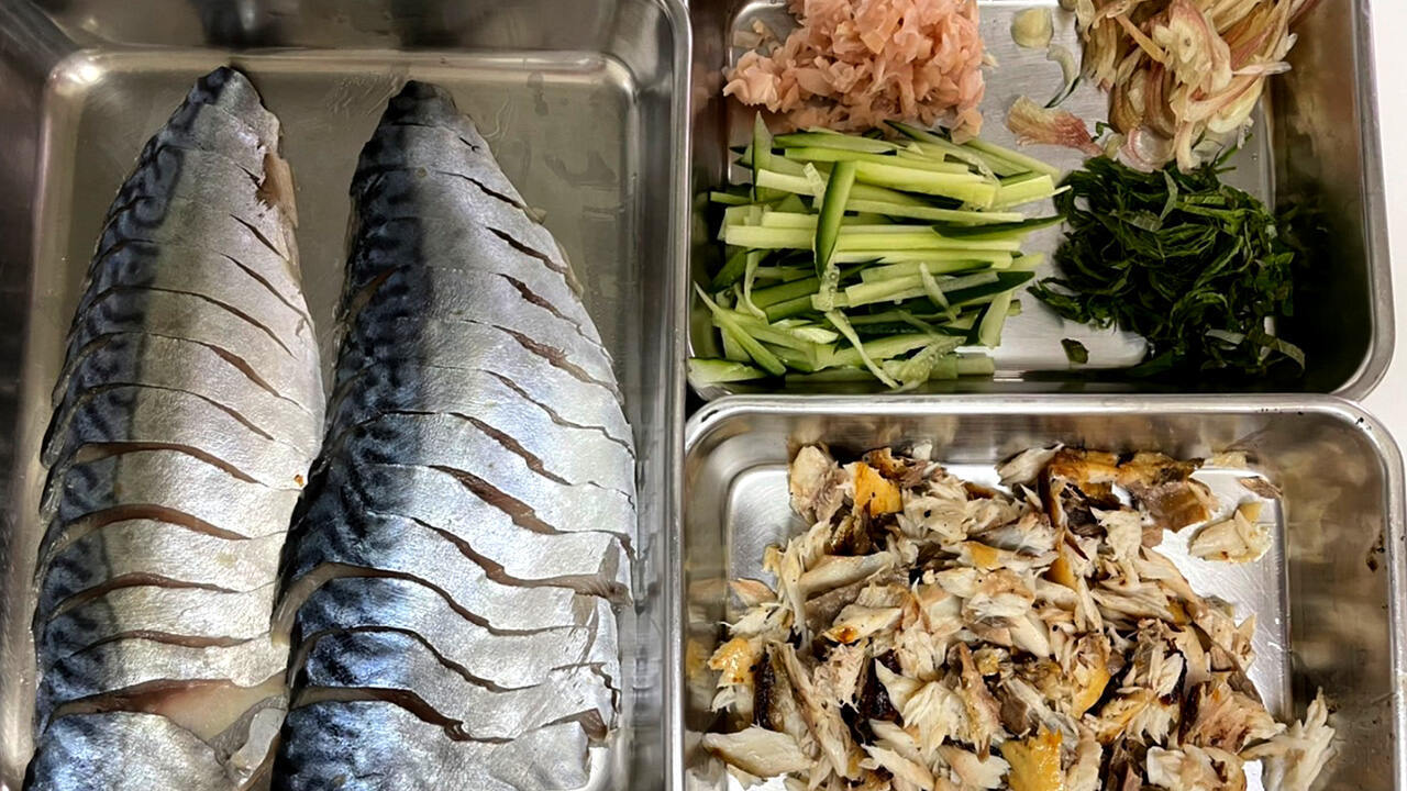 ③ 焼きあがったら鯖をフレーク状にほぐしておく