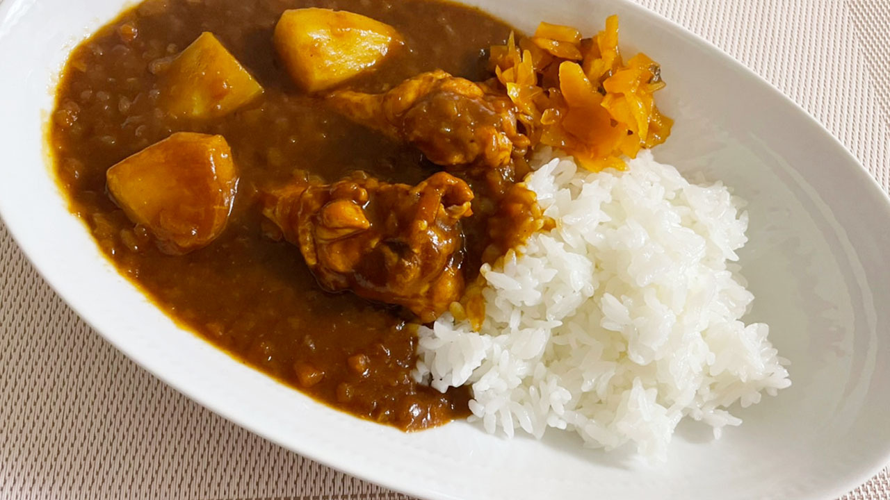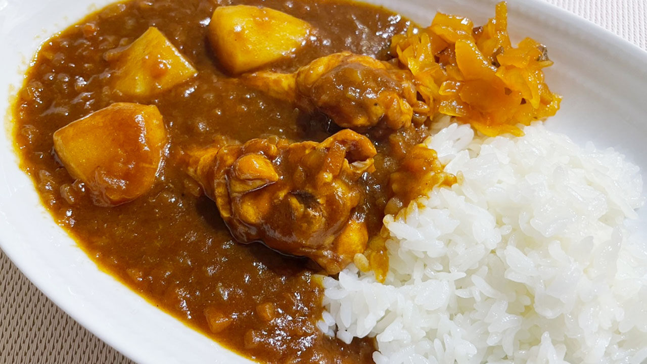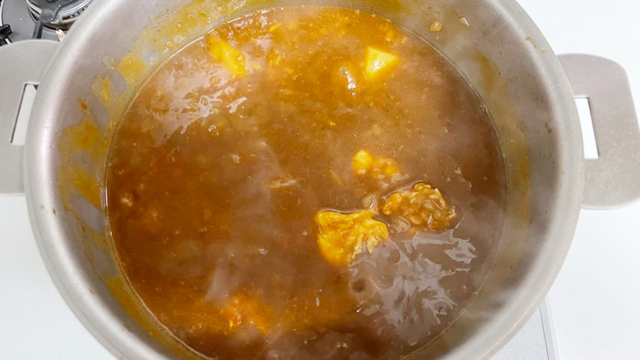 ⑥ 火を止めて市販のルーを入れ、とろみがつくまで煮込んだら出来上がり。