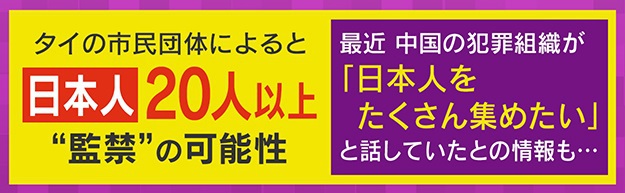 タイの市民団体によると、ミャンマーの拠点では中国の複数の犯罪組織が21か国6000人以上を監禁しているとみられ、日本人も20人以上“監禁”されている可能性があります。最近、中国の犯罪組織が「日本人をたくさん集めたい」と話していたとの情報も…。