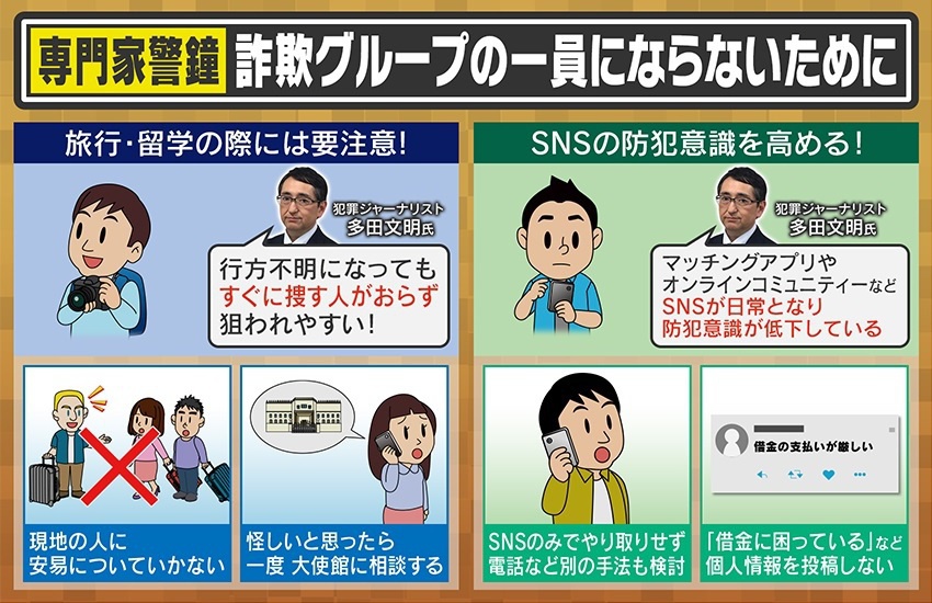 「おっしゃる通りです。もし詐欺に引っかかってお金を騙し取られると、また犯罪グループが人を集めてしまいます。こうしたSNS型の詐欺があることを警戒して、『お金は絶対に出さない』ということを常に考えておかなければいけません」