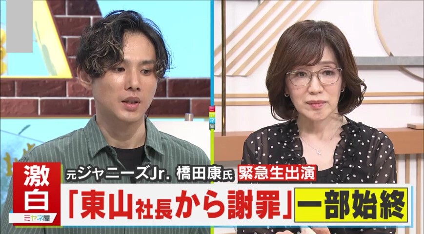 ジャニー喜多川氏の性加害問題を巡って、ジャニーズ事務所の東山紀之社長が9月21日、被害者である元ジャニーズJr.橋田康氏に直接謝罪しました。「ミヤネ屋」は22日、橋田氏ご本人に謝罪の一部始終などを伺いました。「変わるきっかけ、向かい合うきっかけをくれてありがとう」という東山社長の言葉が一番印象に残ったという橋田氏。