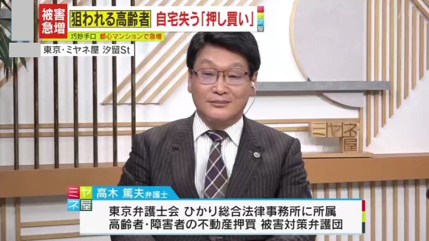 近年、高齢者を狙った『押し買い』と呼ばれる悪質な不動産取引が急増しています。巧妙な手口の数々と、家を守るための予防策を、『不動産押買被害対策弁護団』の高木篤夫弁護士が解説します。