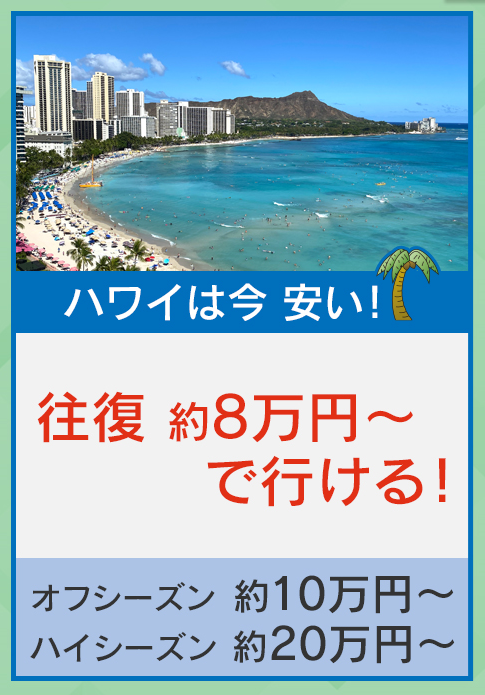 セールの時期だと『ハワイ』は往復約8万円からで行けるとのことで、通常のオフシーズンでも約10万からだといいます。