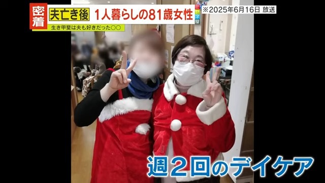 現在の収入は、自身の年金と夫・浩之さんの遺族年金を合わせた十数万円。週2回、デイケアに通い、マッサージなどの軽い運動や、同年代の友人らと楽しく過ごしています。