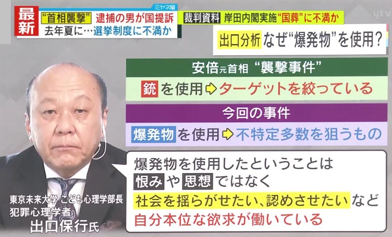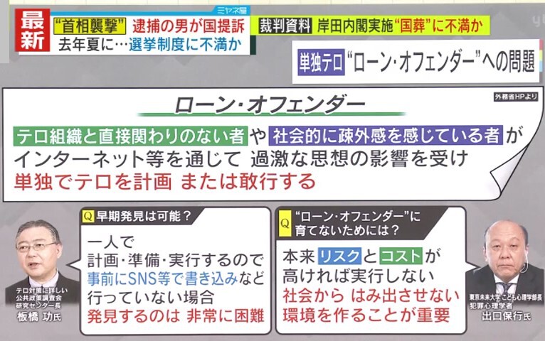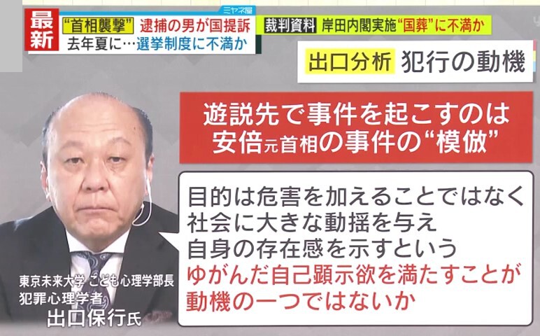 【独自解説】“首相襲撃”事件 犯罪心理学者・出口氏「動機は“自分の存在を認められたい”という承認欲求」 発見が困難な『ローン・オフェンダー』とは
