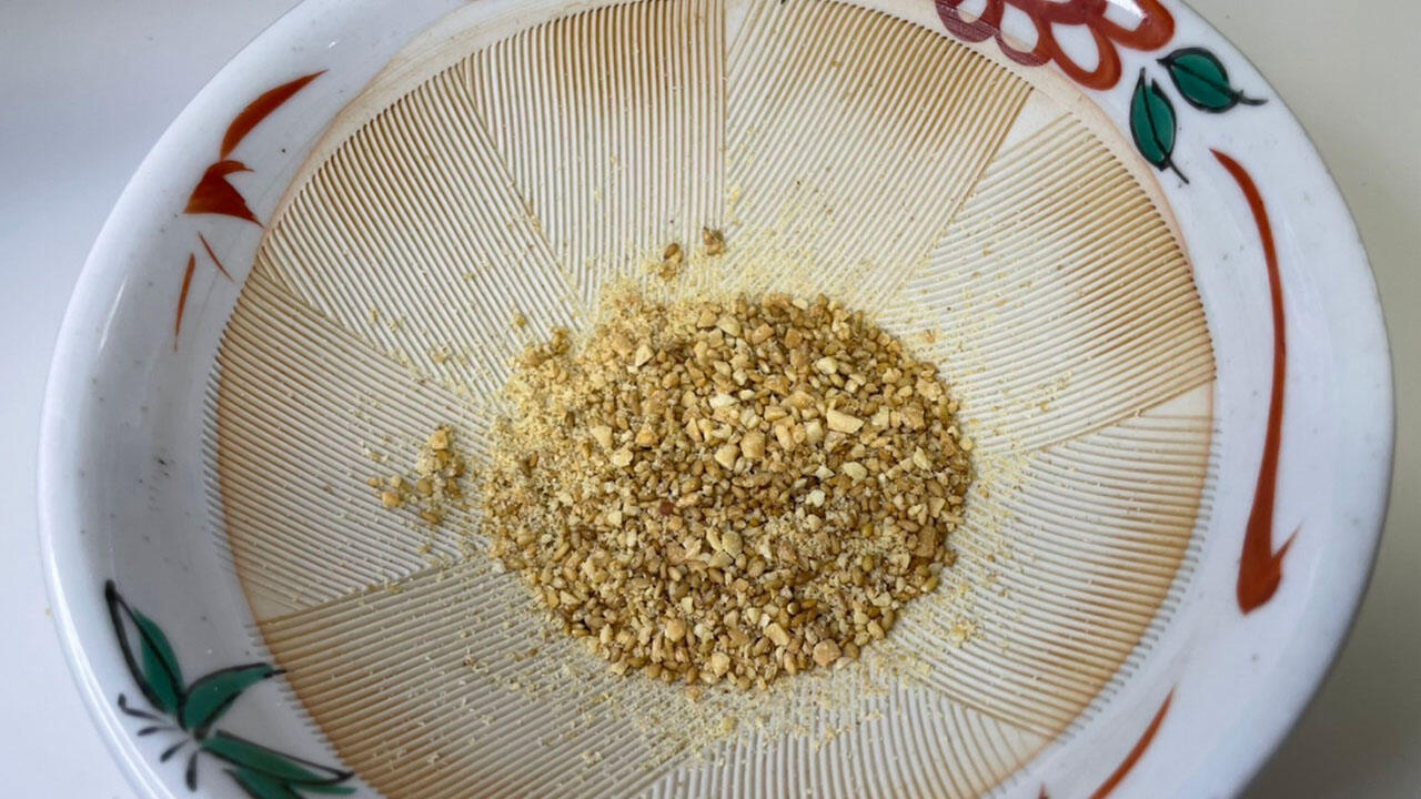 ⑤ すり鉢にねり胡麻、出汁を加えて、よく混ぜ合わせる