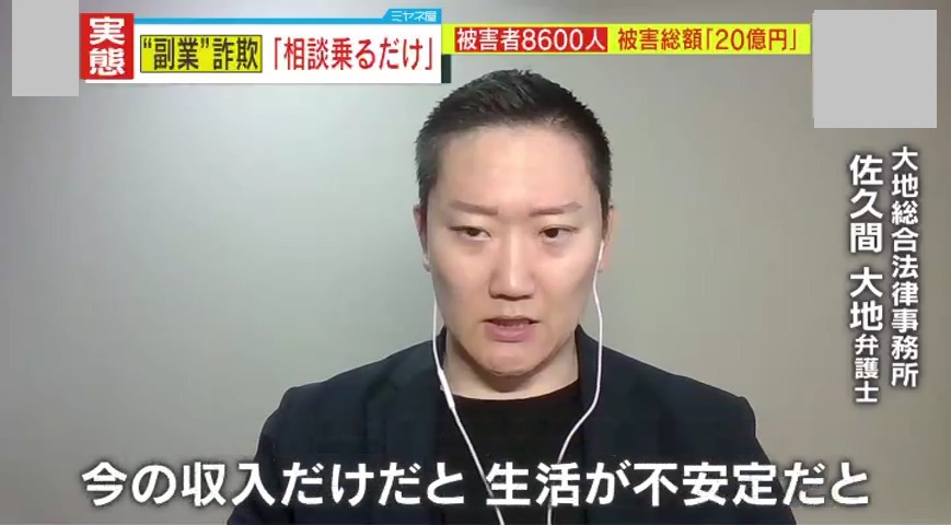 「被害者は、“コロナ”などいろいろな影響があって、今の収入だけだと生活が不安定だと。『誰でも簡単に手軽に、スマホ一つだけあれば大丈夫』とか『在宅でできる』とか、そういった甘い謳い文句で勧誘されて、魅力を感じて入り込んでしまいます」