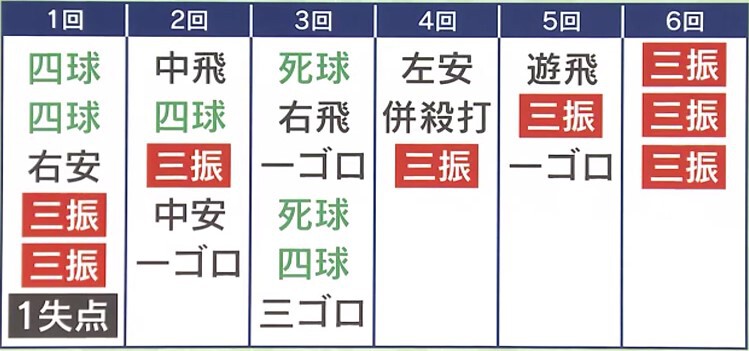 「その前の4回に先頭打者にヒットを打たれて、やはり今日は調子悪いのかなと思ったときに、ファーストゴロのダブルプレーがありました。その時に、何か姿が変わったように見え、ボールのキレが増したんです。今日の試合でプレイボールから投げていたのは、投げた瞬間からスイーパーだと分かるボールでした。それだと、バッターは大谷選手の一番のストロングボールがスイーパーだと思っているので、見極めて、最初はファウルが多かったんです。しかし、次第にストレートやフォークボールが決まり始め、バッターらに選択肢が増えました。大谷選手も調子を上げ、スイーパーもボールがバッターの近くで逃げるものに変わってきました。大谷選手の調子も変わり、バッターに最初に植え込んだイメージも操作したんです」