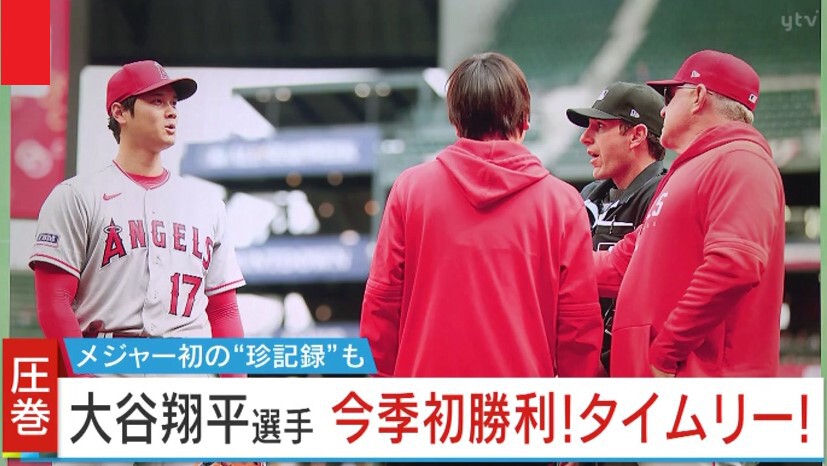 投打間に時間制限を設けるという新ルール「ピッチクロック」で、大谷選手ならではの珍事がありました。まずは1回、4人目の打者に対して、投手として違反。そして6回、3打席目で、打者としての違反をしました。ピッチャーとバッターで同じ人物がピッチクロック違反をするというこの珍事は、メジャーリーグ史上初の出来事でした。