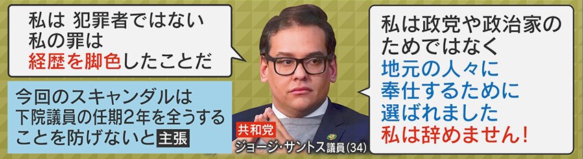 「ここまでの人は記憶にないです。立候補のときに履歴書などで身辺調査はします。サントス議員の場合、地元の小さな新聞社がおかしいと言っていたり、選挙委員会の人も知っていたかもしれないのですが、『当選できたら良いんじゃないかな』と無責任に目を瞑った人もいるのでは、という別問題も起きています」