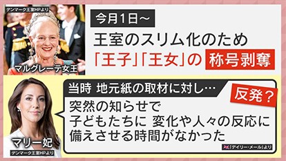 「家族に財力があるので、助けてくれるとは思いますが、公務をしないのでその代わりに就職しないといけないと思います。ただ、誰の子どもかは分かるので、特別扱いというか恵まれた環境あることは変わりがないです。称号が無くても王族であることに変わりはありません。マリー妃とメーガン妃を比較しますと、デンマークの場合、王室に入るとデンマークの国籍を取らないといけません。メーガン妃もイギリス国籍を取らないといけなかったら、意気込みも変わっていたと思います」