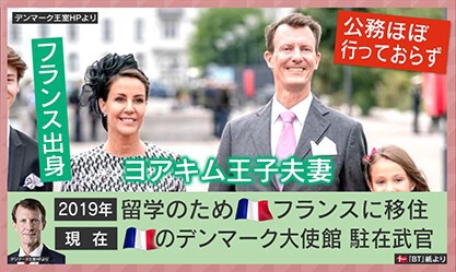 ヘンリー王子夫妻は、2020年に英国王室を離脱し、その後メ―ガン妃の出身地であるアメリカで生活しています。一方のヨアキム王子夫妻も留学のため2019年、一家でマリー妃の出身地であるフランスに移住しています。現在、ヨアキム王子はフランスのデンマーク大使館の駐在武官を務めていて、公務をほぼ行っていないとのことです。