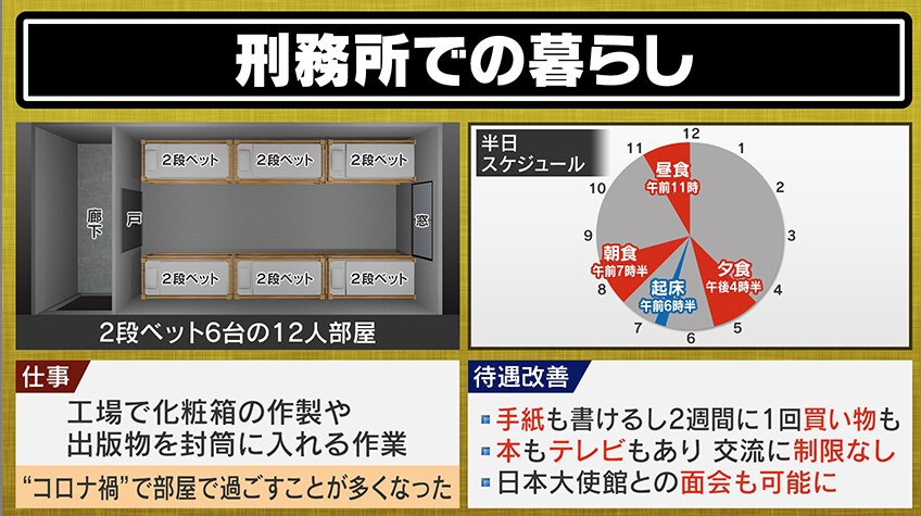 その後、鈴木さんは服役します。工場で化粧箱を作ったり、出版物を封筒に入れるなどの作業をするのですが、手紙も書けるし、2週間に1回買い物もできる。本もテレビもあって、交流に制限もなく、日本大使館との面会も可能になるなど、刑務所の方が取り調べのときより待遇が改善されたといいます。