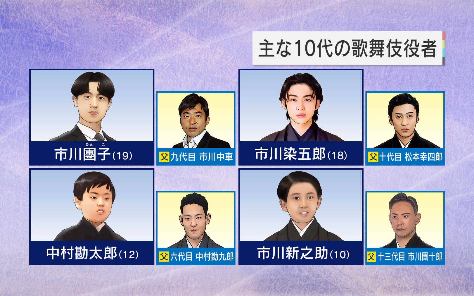 今10代の歌舞伎役者がたくさん出てきています。今回、猿之助さんの代役を務めている市川團子さん(19)。そして10代目松本幸四郎さんの息子の市川染五郎さん(18)。6代目中村勘九郎さんの息子の中村勘太郎さん(12)。13代目市川團十郎さんの息子の市川新之助(10)さんなどがいます。