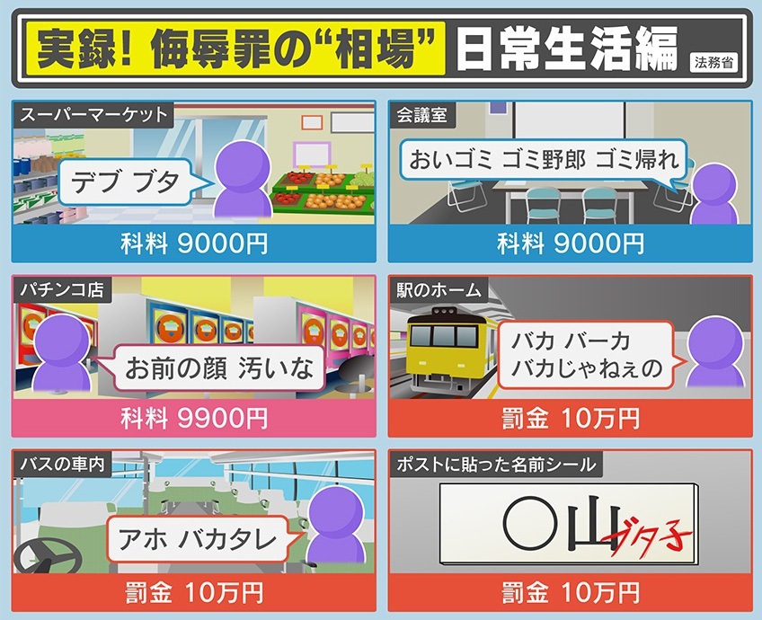 一方、ネット上のみならず、日常生活での侮辱罪の実例も公表されました。