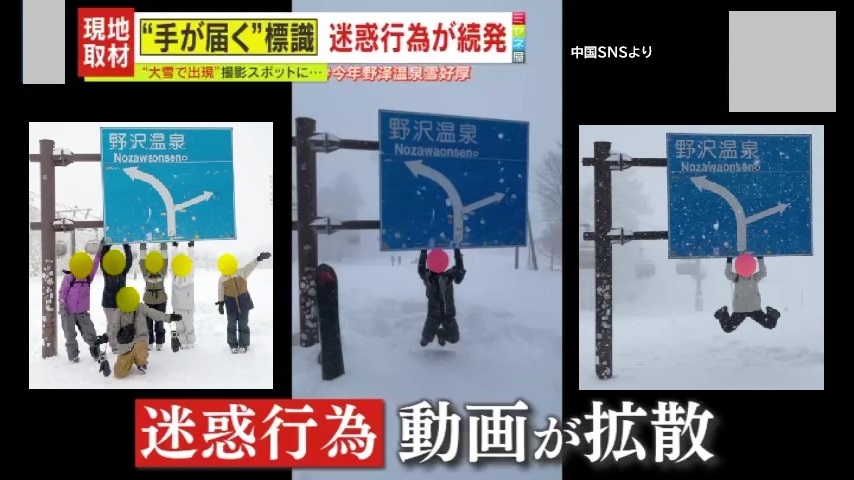 【続出】スキー場の“手が届く道路標識”に相次ぐ迷惑行為 中国のSNSでは“ぶら下がり”動画が拡散 自治体も困惑し対応へ「これらは罰せられる行為」「今後も迷惑行為が続く場合には、道路標識の設置方法を変えることも検討