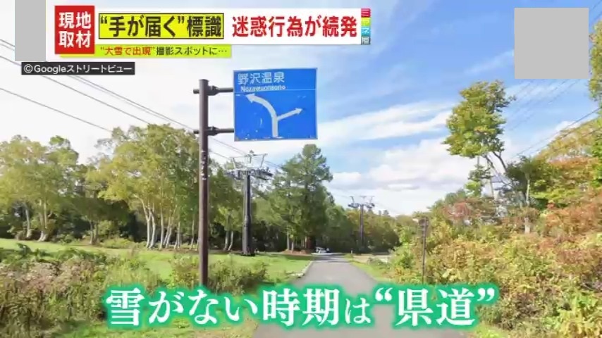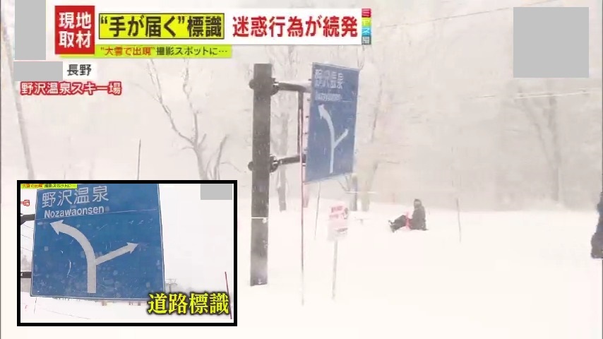 ■『野沢温泉スキー場』に“手が届く”道路標識が出現?珍しい撮影スポットに迷惑行為が続出…