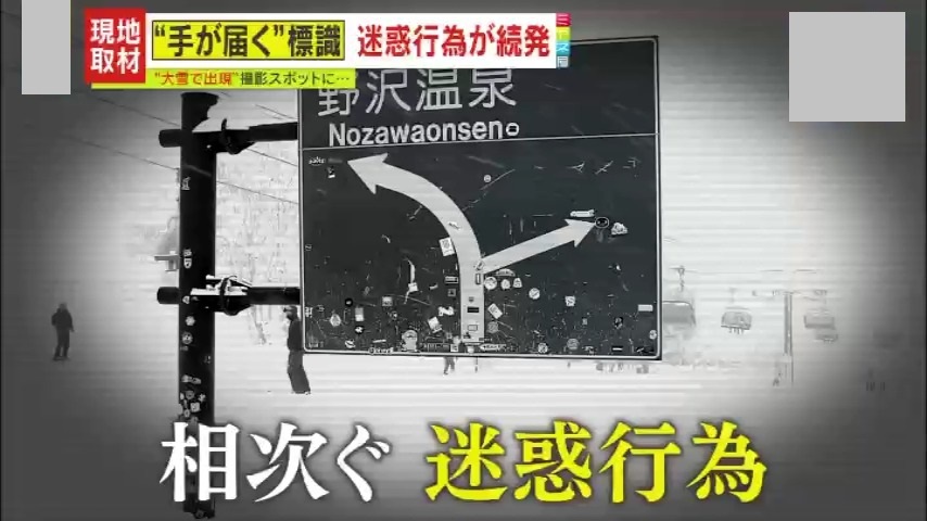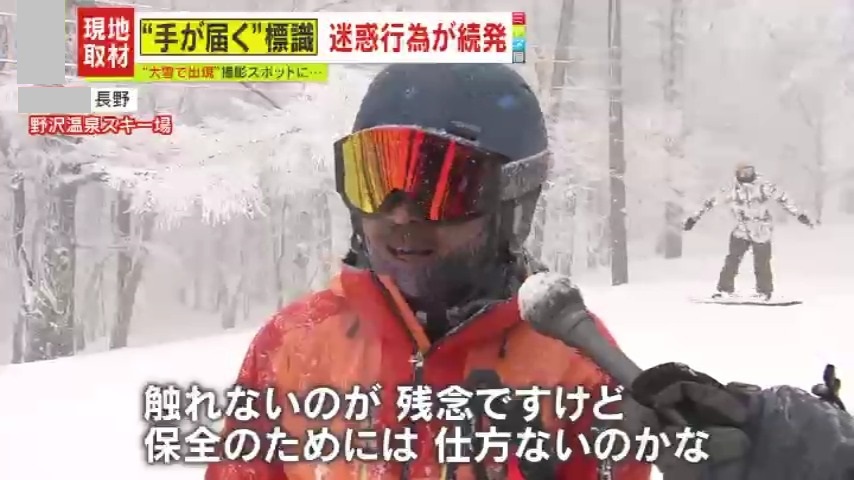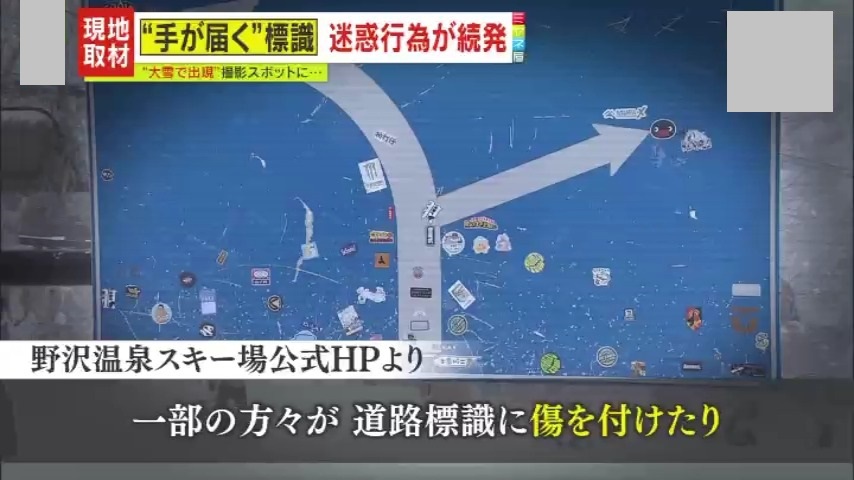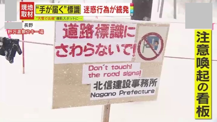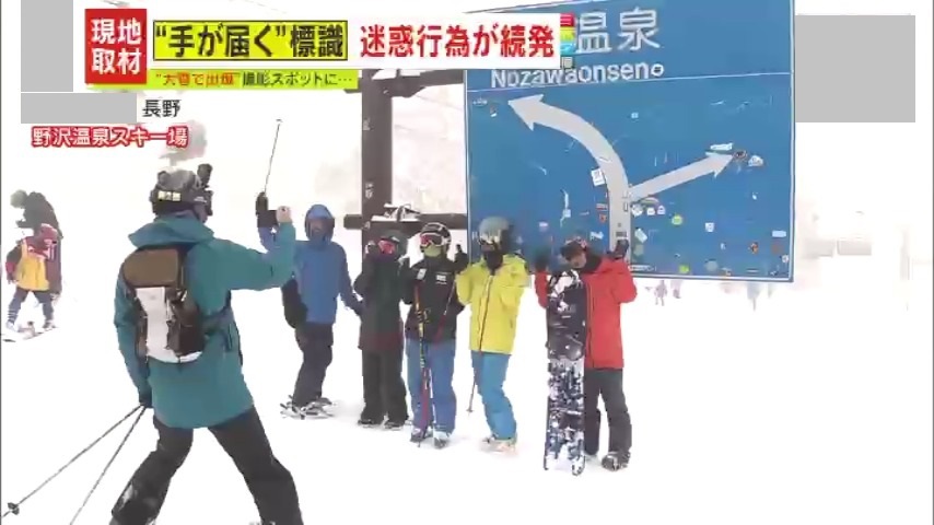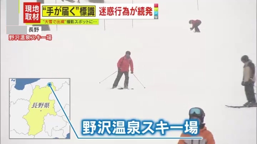 珍しい光景を写真に収めようと、多くの人だかりができていました。平年の約1.5倍の積雪となった『野沢温泉スキー場』。一躍、この冬ならではの人気撮影スポットとなっていました。しかし、普段は触れない道路標識に手が届くようになったことで、ある問題が―。