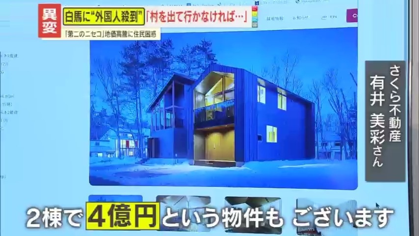 『さくら不動産』有井美彩さんは、「要因としては、外国人に限らず投資家からの投資が相次いでいる。例えば人気(エリア)の別荘は、土地・建物込みで、2棟で4億円という物件もある。今まで、なかなか値が付きにくかったようなエリア・条件の場所でも、売れるようになってきている」と話していました。