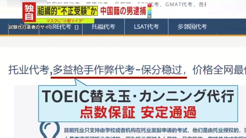 ネット上では、「TOEIC替え玉・カンニング代行・点数保証・安定通過」など、不正受験のサービスを堂々と謳う中国語のサイトも…。