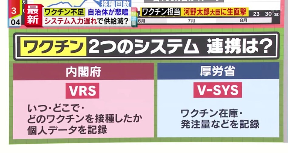 「自治体によっては、かかりつけ医から接種券を預かって、まとめて市役所などで入力をしています。ですから、当日に入れた数より大体1.5倍以上、1週間で数字が増えているのですが、ほとんどの自治体でVRSには的確に入力をしていると思います。このVRSの入力が無いと、住所地で打っている人と住所地外で打っている人のワクチンのやり取りを、いずれ調整しなければいけないし、ワクチンパスポートはこのVRSのデータをベースに発行するので、国民の迷惑になるのでVRSの入力はしっかりやってください。アルバイトで入力をするならそのアルバイトの人件費は国が持ちますし、リーダーを買って入力するならば、その費用も国が持ちます。このVRSの入力に手間取っているからと言って、入力が後回しになっていいということにはなりません」