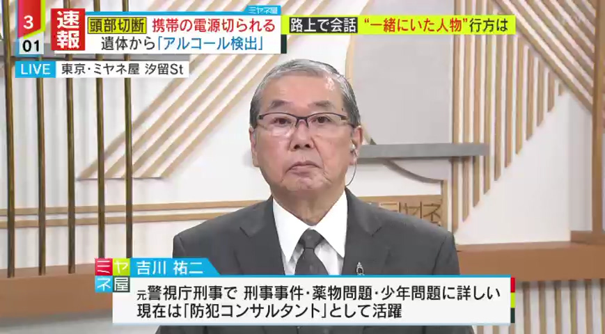 「今回15分前まで遡って防犯カメラの映像が入手できたということですが、それよりも前の行動を把握することが今後の捜査にとって重要なポイントになっていくものと思います。また、被害者は殺害されて切断されていますが、その切断の道具をいつから準備していたかということも重要になってきます」