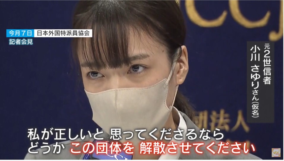 10月7日、小川さんは「日本外国特派員協会」で記者会見を開きました。開始から50分後、会場の空気が一変する出来事がありました。“統一教会”からメッセージが届いたのです。彼女の両親の署名が入った通知書で、「小川さんは病気である」として、会見中止を要求するものでした。ショッキングな内容に涙を流す小川さん。それでも「夫の支えなどにより、病は4年前に治っている」と説明し、会見を続けました。