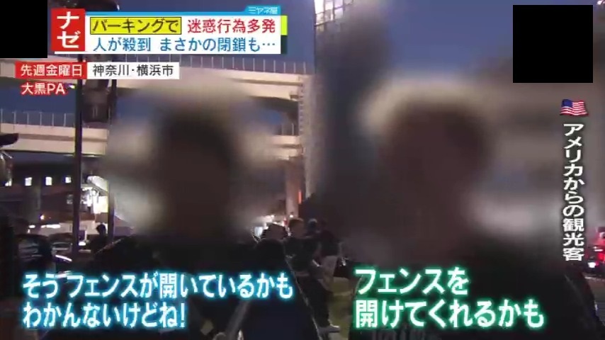 タクシーで『大黒パーキングエリア』を訪れたという、アメリカからの観光客2人。