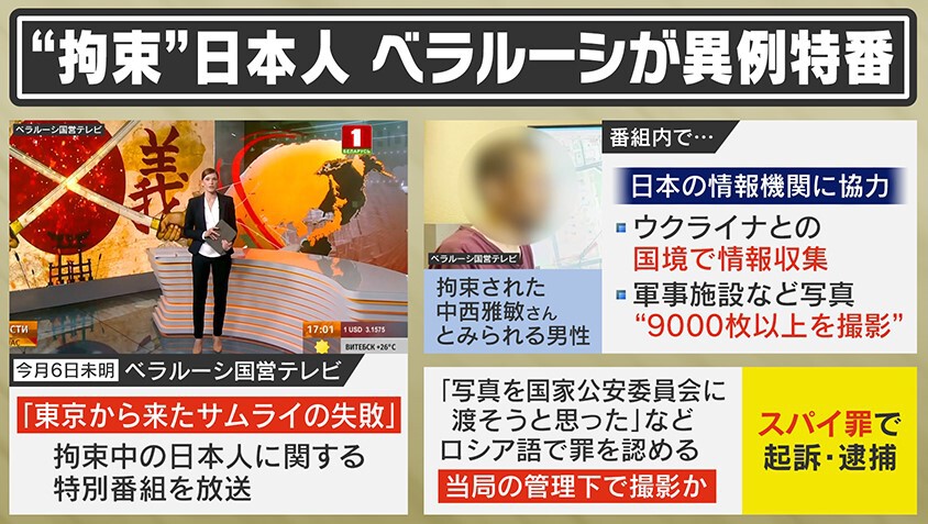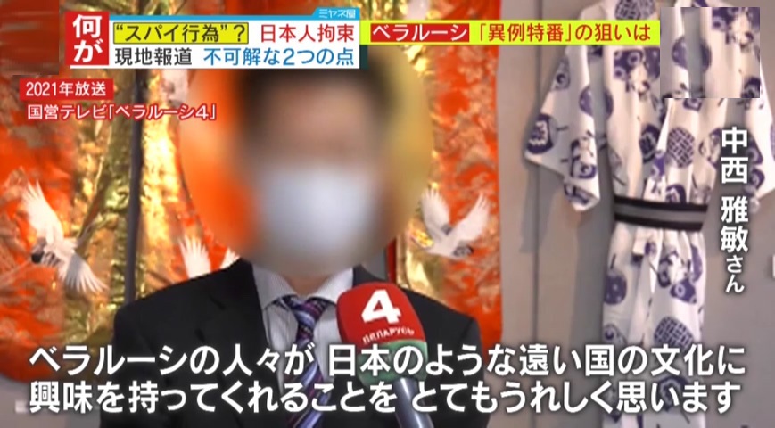 拘束された中西雅敏さんは、ベラルーシで日本語教師をしていたといいます。その人物が「日本の情報機関に協力した」として、突然スパイ罪で拘束・起訴され、公営テレビでは特別番組まで放送されました。