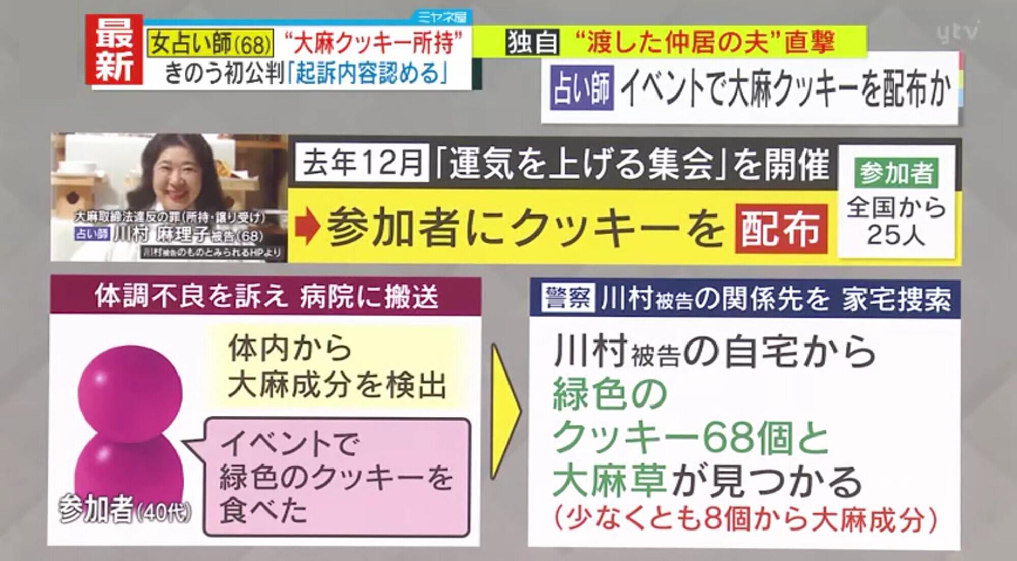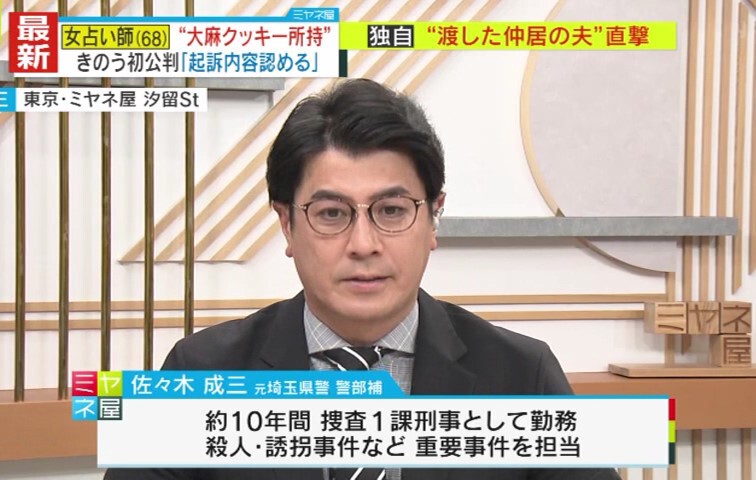 大麻取締法違反の罪に問われている、自称占い師の女の初公判が開かれ、「運気を上げる」と称したイベントで配布したとみられる“大麻クッキー”の所持を認めました。占い師の女はなぜ、生業とする占いのイベントで“大麻クッキー”を食べさせたのでしょうか?元埼玉県警捜査1課の佐々木成三氏と、初公判を傍聴した西山耕平ディレクターが解説します。