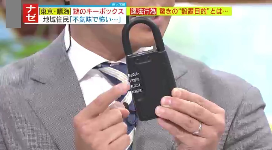 「そもそも、キーボックスとは何か?こちらに用意しました。ダイヤルが付いていて、数字を合わせるとボックスが開きます。この中に鍵などを入れ、複数の人と安全に共有できるというものです。これが今、東京・晴海地区の至る所に付けられているということで、一体ナゼなんだ?と話題になっています」