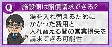 「入浴剤が効能に弊害があれば、お湯はそのまま使えませんから、排除して入れ替えなければいけません。だから、それにかかる費用や、その期間中の営業利益については、賠償請求できます」