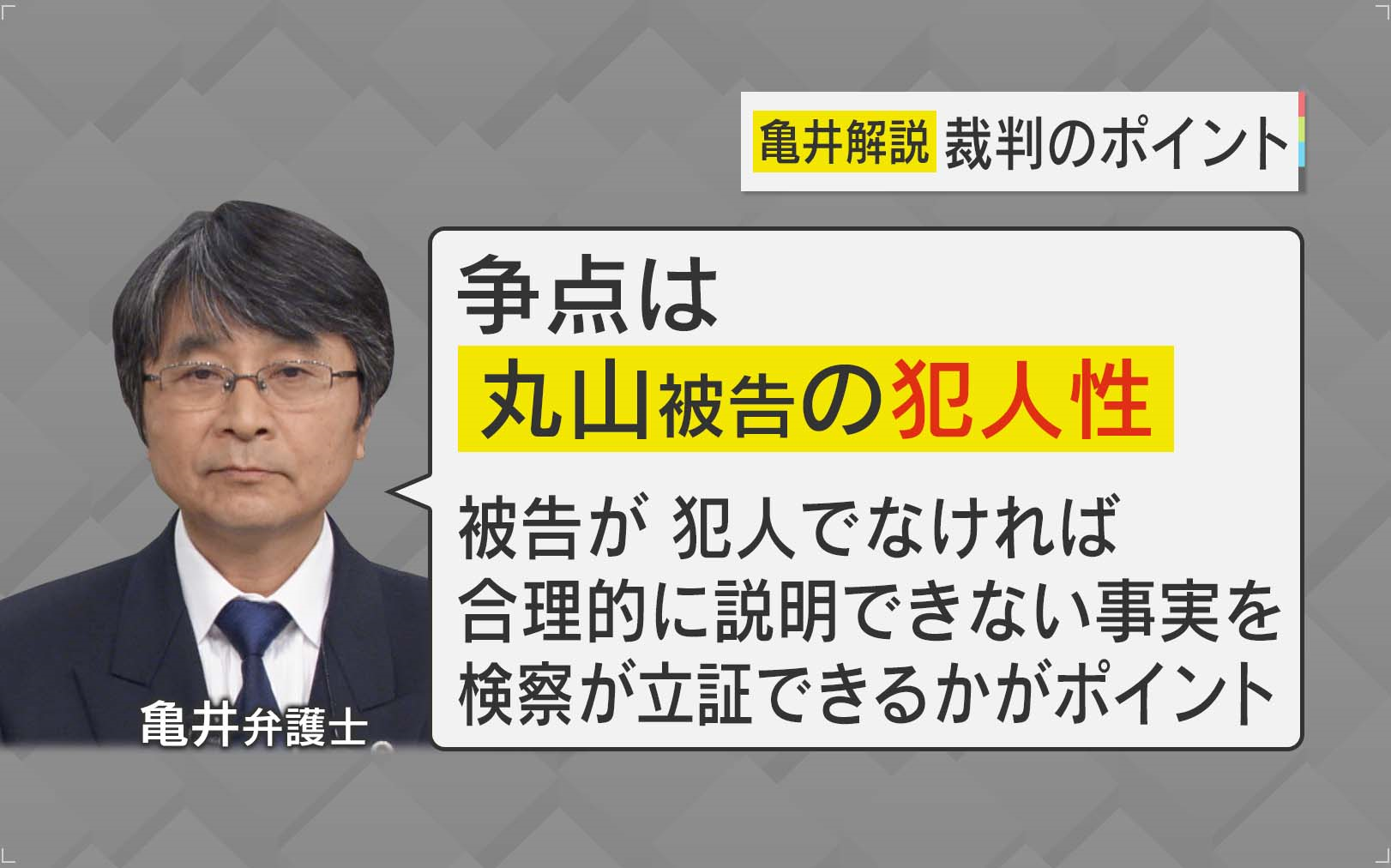 裁判について、元検事・亀井正貴弁護士は「争点は、丸山被告の“犯人性”。被告が犯人でなければ合理的に説明できない事実を、検察が立証できるかがポイント」だと話しています。