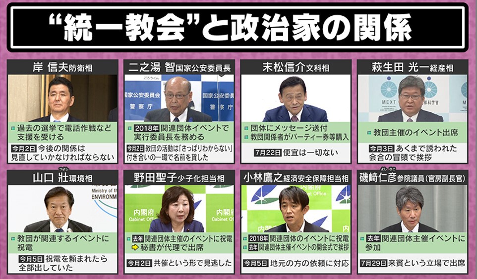 岸田総理大臣は8月10日、内閣改造と自民党役員人事を行い、第2次岸田改造内閣を発足させます。今回の人事にあたり岸田総理は、所属議員に対して、“統一教会”との関係を見直すよう指示しています。