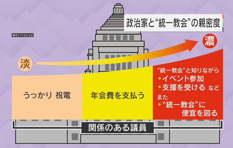 「私は、イベントに参加したり、広告塔になることは、祝電を送る以上に問題が大きいと思いますし、お金を受け取るということになると、さらに問題が大きいと思います。濃淡は当然あるのですが、実は閣僚は“統一教会”との所管に関係しています」