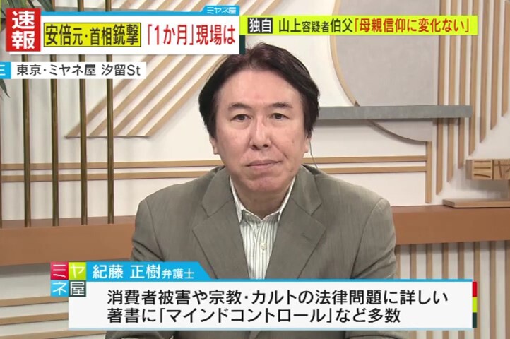 8月8日、安倍晋三元首相銃撃事件から1か月を迎えました。事件の背景となっている“統一教会”に多額の献金をした山上容疑者の母親は、近く記者会見を開く意向を示していることが分かりました。一方、“統一教会”と政治家の関係、“トラブル団体”との線引きはどうするのかなど、浮かび上がってきた様々な問題を、消費者被害や宗教・カルトの法律問題に詳しい、紀藤正樹弁護士が解説します。